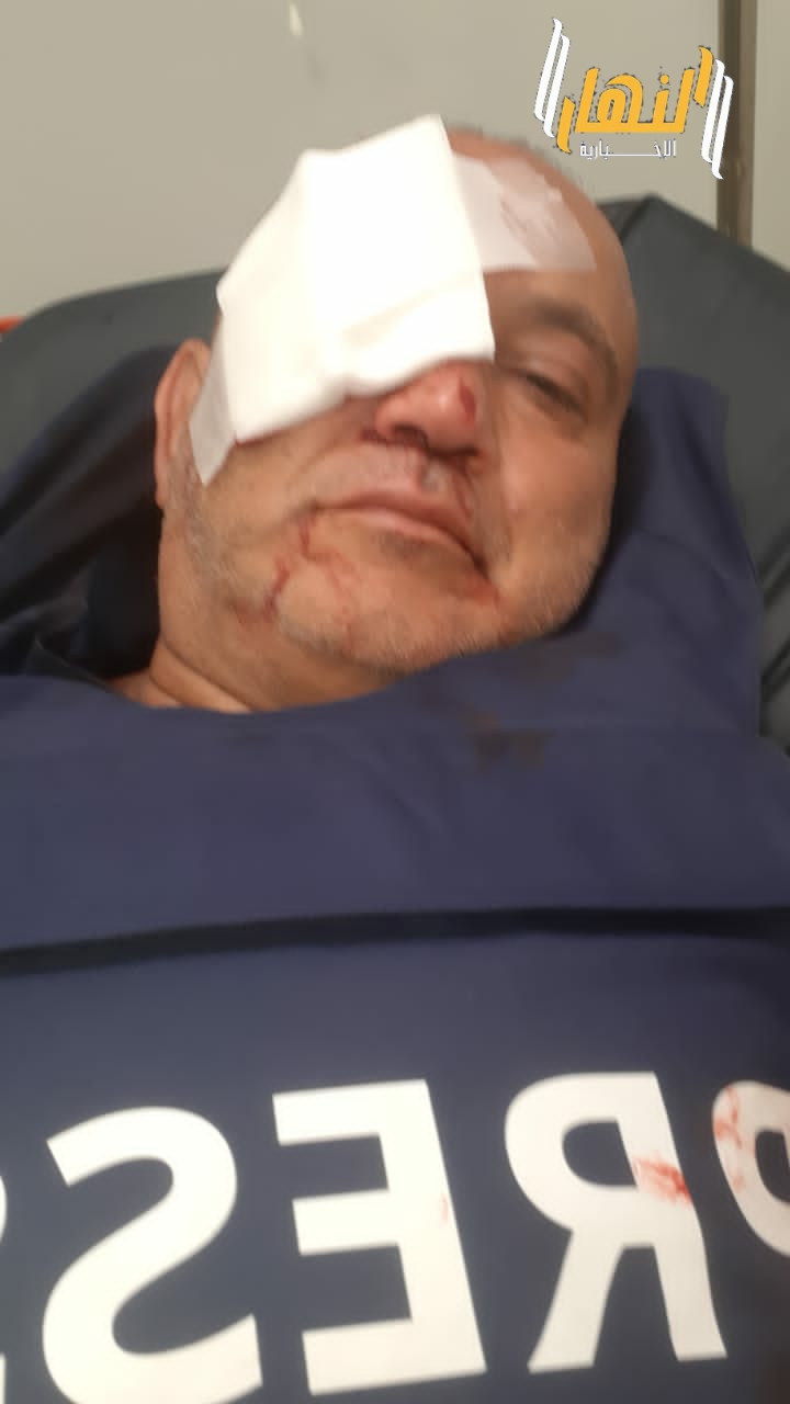 تعرض مدير تحرير النهار الإخبارية إلى اعتداء من قبل أحد المتظاهرين ما أدى إلى إصابته بعينه